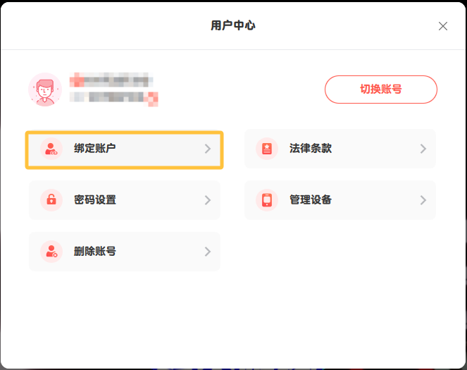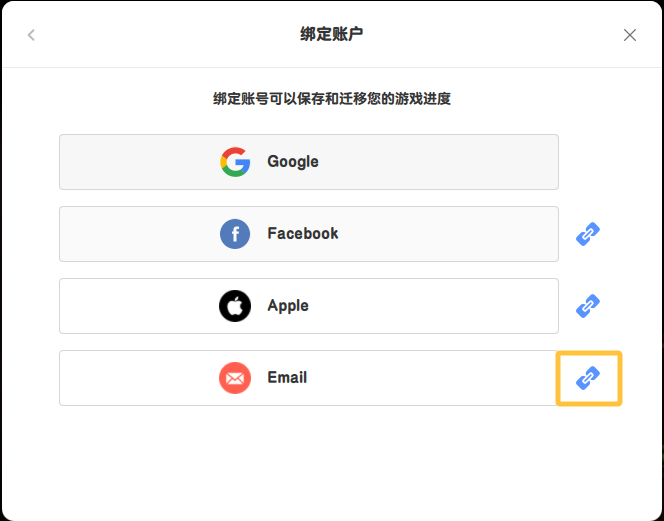 1. 请于登录页面点选右上的【用户】(面具图标)后,再点选「绑定账号」