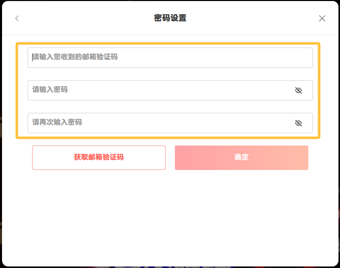2. 点击「获取验证码」,输入郵箱收到的验证码后,并填上欲设定的密码,填写完毕后点击「确定」即可设定密码
