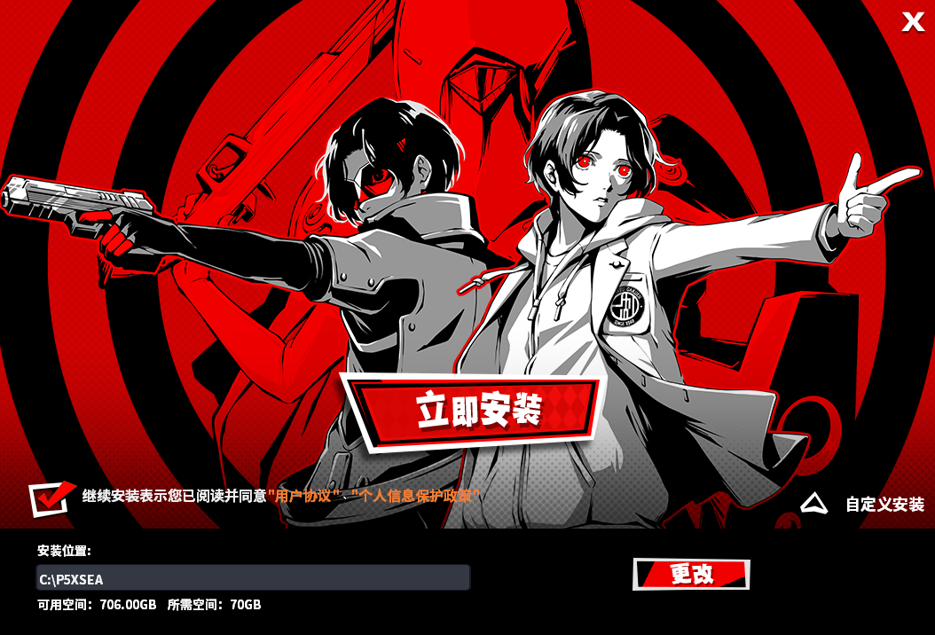 ※诚心建议您将安装路径设定于PC装置的「SSD硬盘」中,即可高速下载安装游戏。例如,若您C槽为SSD固态硬盘,D槽为HDD硬盘,建议您将《Persona5: The Phantom